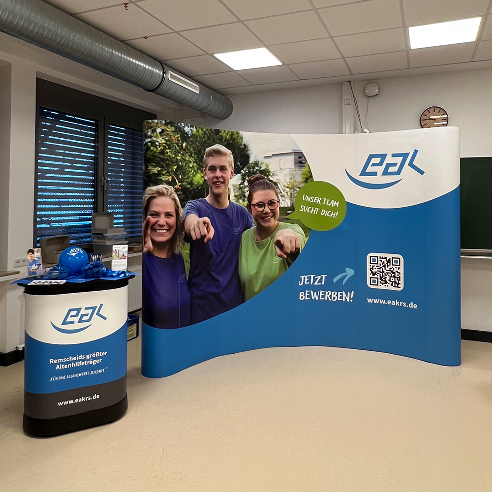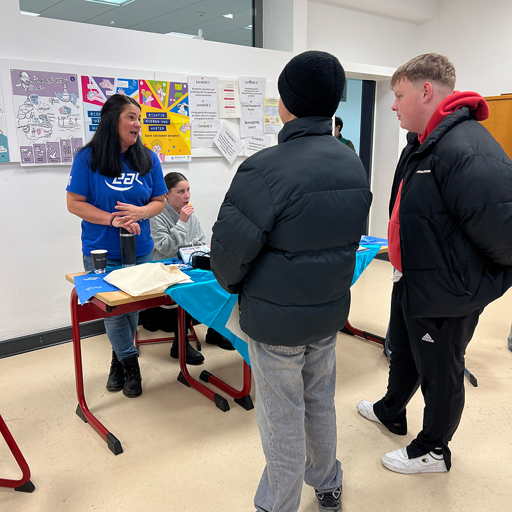 Rund 450 Schülerinnen und Schüler aus verschiedenen Remscheider Schulen sowie weitere Interessentinnen und Interessenten besuchten auch unseren Stand, um sich über die Ausbildungsangebote der eak zu informieren.